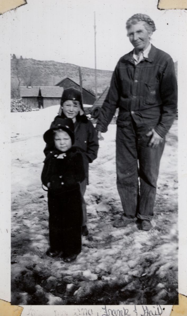Lena McCleary with Frank and Gail Henderson, Banner Ranch, circa 1940s.Photograph Details