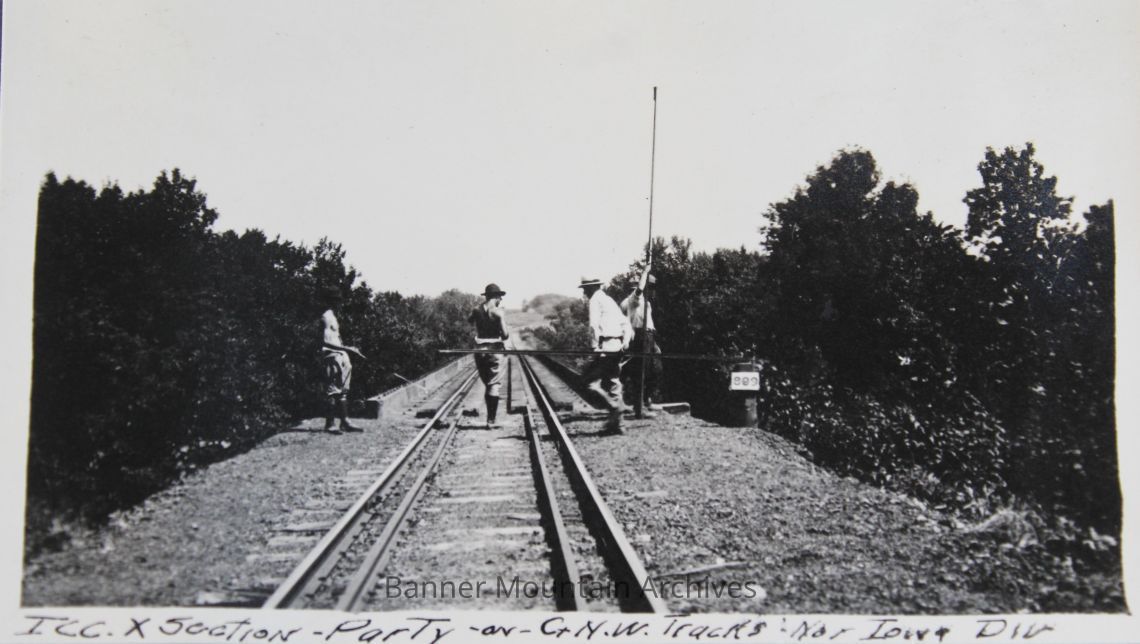 An Interstate Commerce Commision cross section party on Chicago and North Western tracks on the northern Iowa Division, circa 1907.