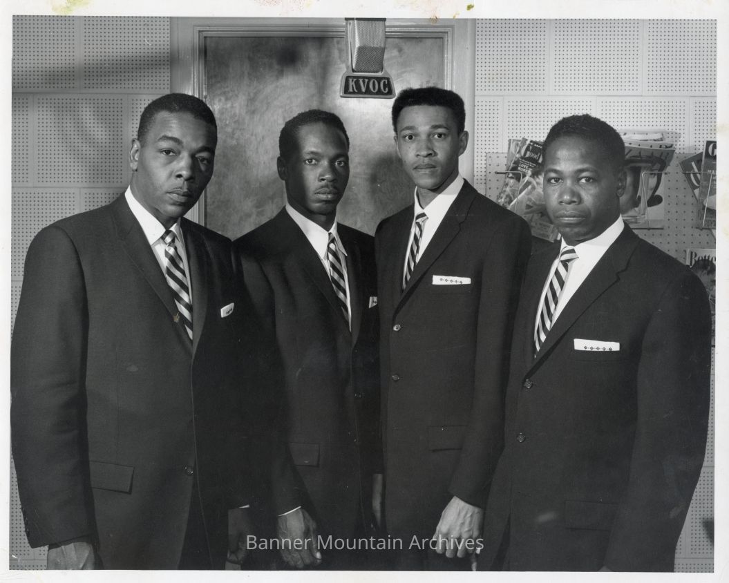 Group of African Americans, possibly a band, in the KVOC radio station, Casper.Photograph Details