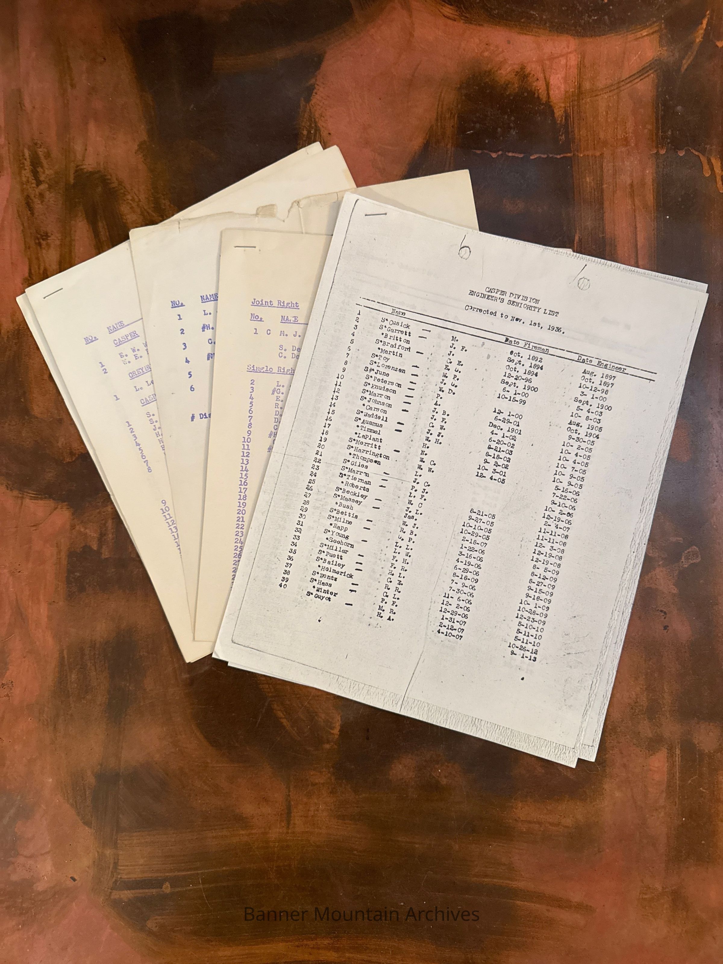 Seniority list of the Casper Division engineers, corrected to November 1, 1936.Creator