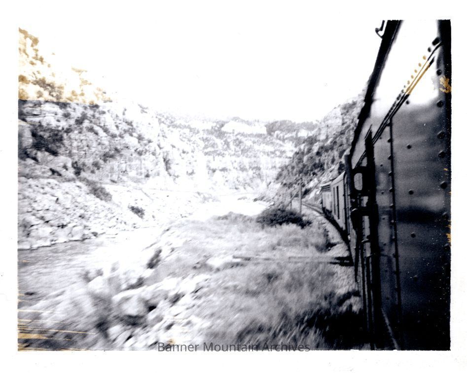 Chicago, Burlington and Quincy Railroad train no. 30 in the Wind River Canyon, August 11, 1967.