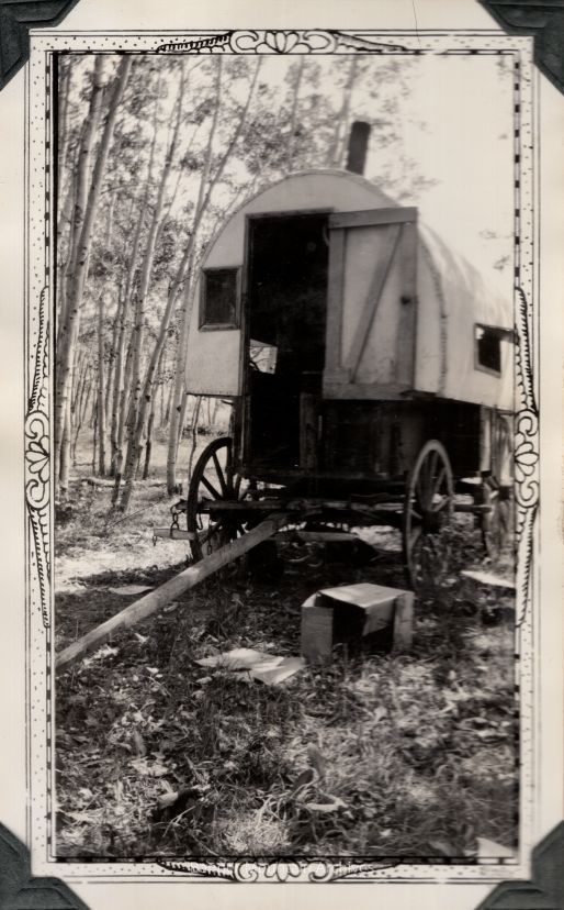 Sheepwagon set up in Aspens, most likely near the Tobin, circa 1930s.