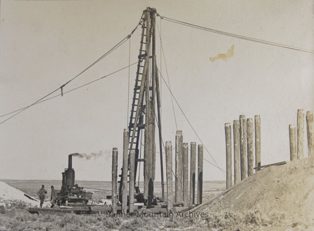 Pile driving a bridge on the W&NW railway, 1906.