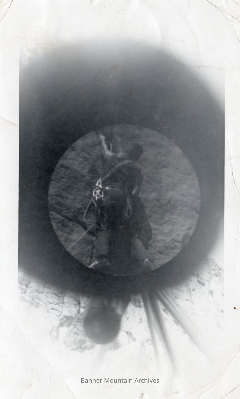 Gary Cole on a practice climb on Devil's Tower, Wyoming, July 14, 1956.Photograph Details