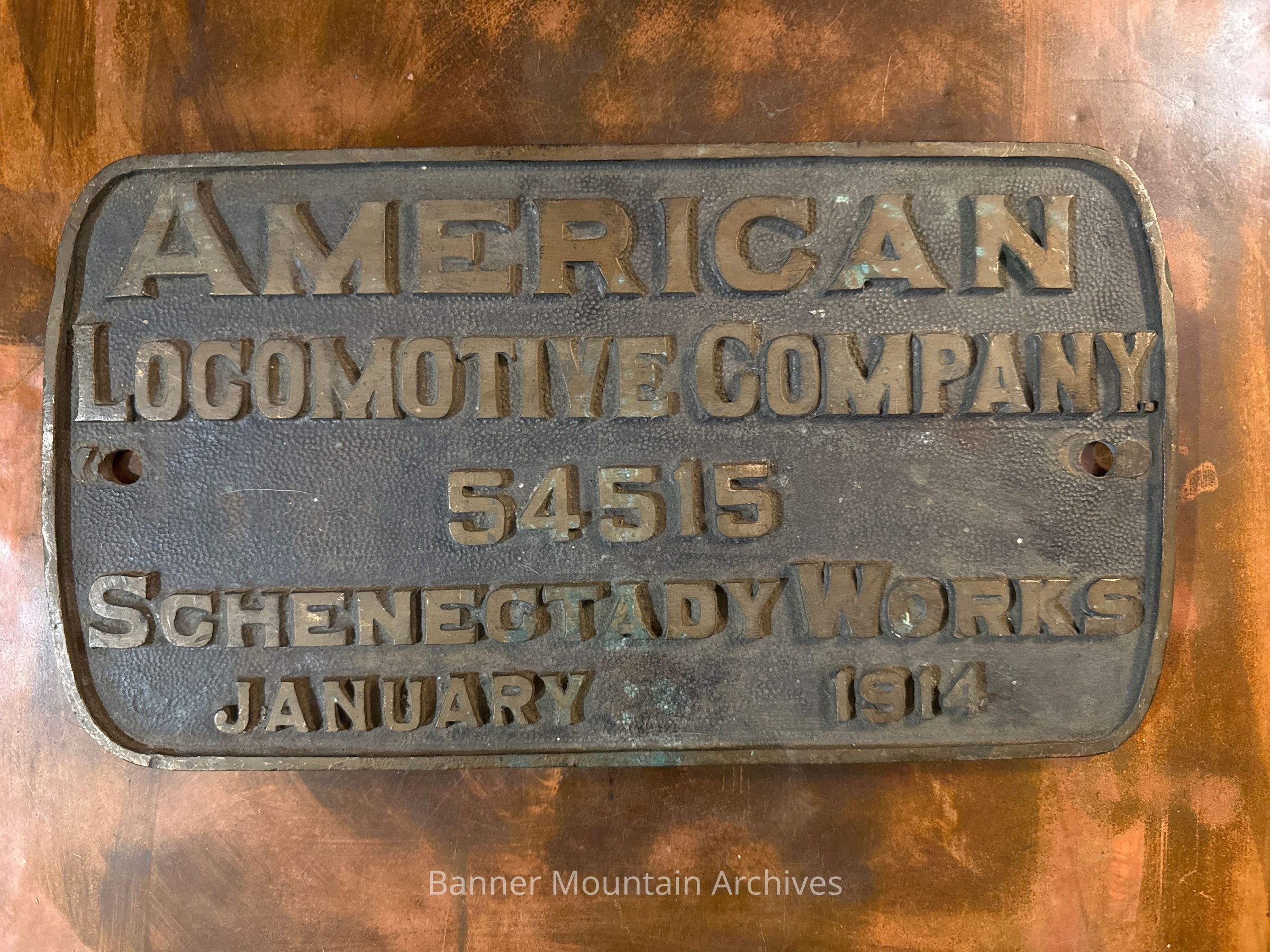 Alco builder's plate no. 54515, Skaneateles Railroad 0-6-0 #4, built January 1914.Category