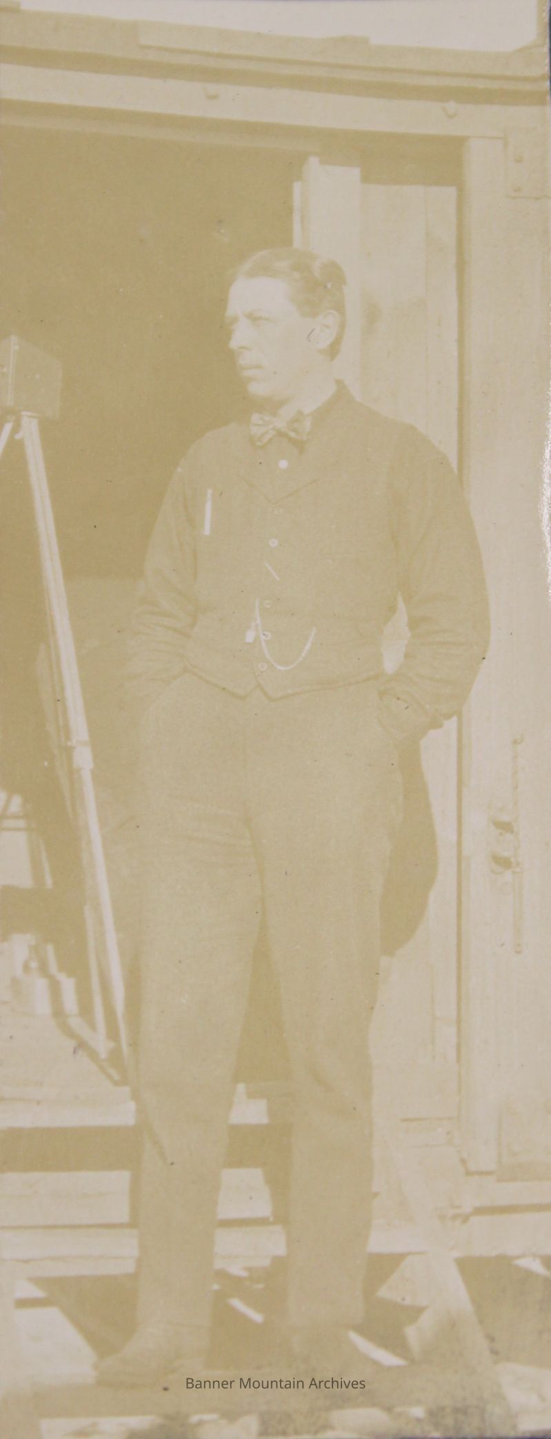 Chicago and North Western res. engineer W.A. Hazard from Chicago at Valentine, Nebraska, 1907.