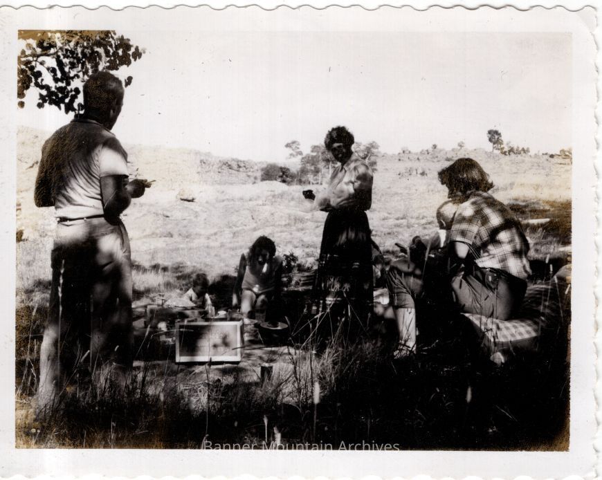 Picnic at the Tobin Place, possibly Donny Stewart's family, 1954.