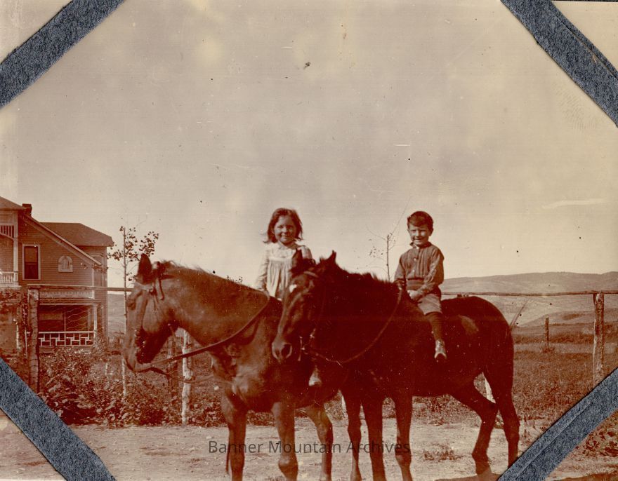 Melissa and Silas Brooks on horses, V-V Ranch, circa 1900s.Photograph Details