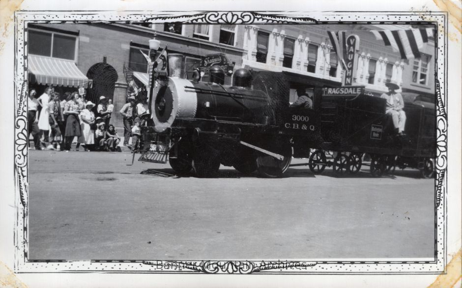 Chicago, Burlington and Quincy "steam train" in the Sheridan Parade, circa late 1930s.Photograph Details
