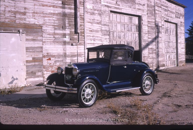 Smitty's Model "A" Ford next to the CB&Q Casper roundhouse, October 24, 1966.Photograph Details