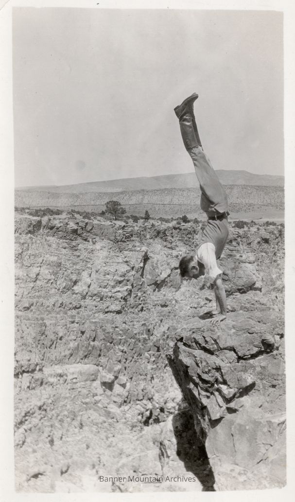 Tom Cole doing a handstand on the rim of Pathfinder Canyon, the "Grand Canyon of the Platte."Photograph Details