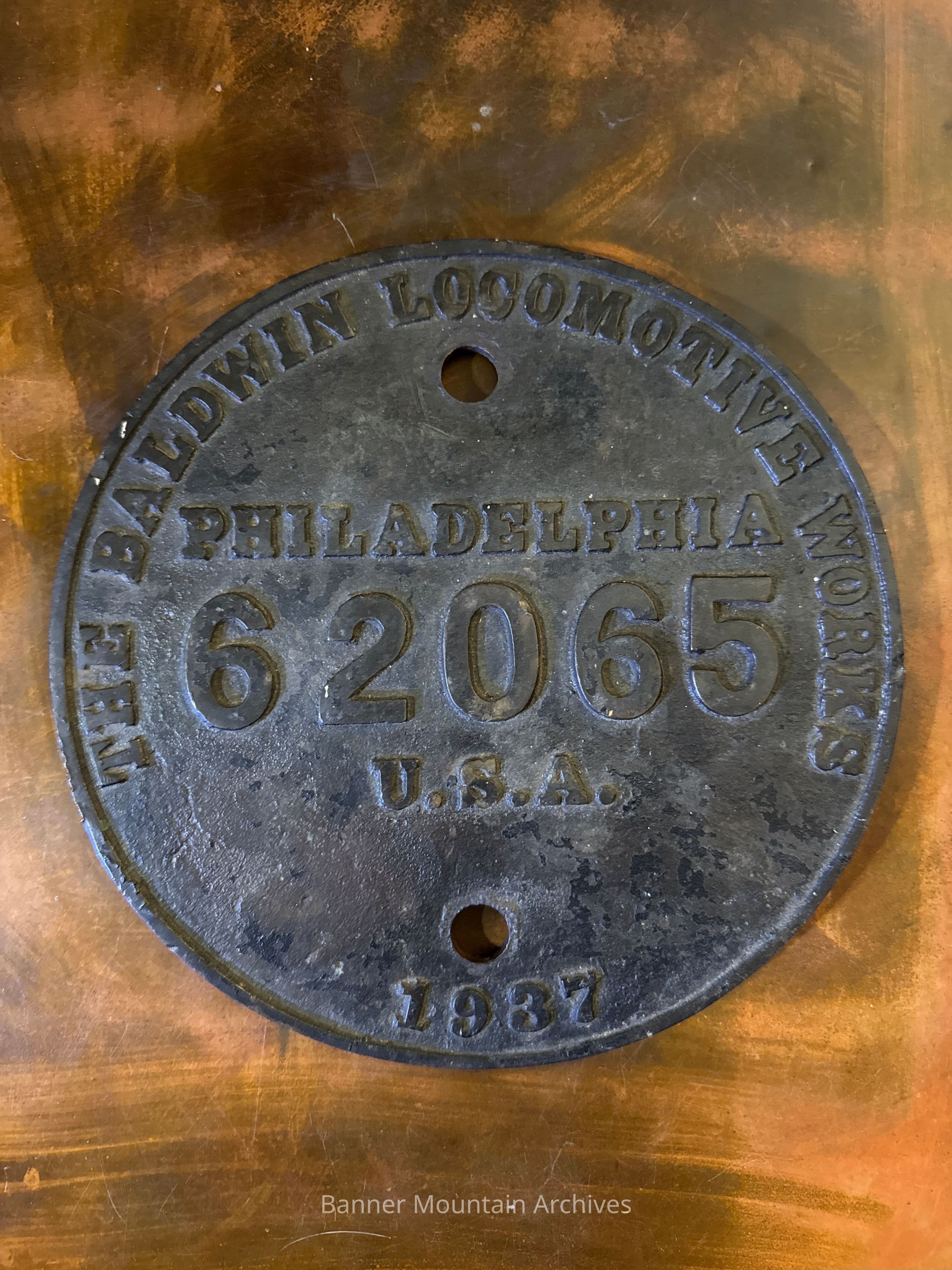 Builder's plate from the Baldwin Locomotive Works for steam locomotive build number 62065, Weyerhauser Timber Co. 2-6-6-2T "Mallet Mogul" #112, 1937.Category