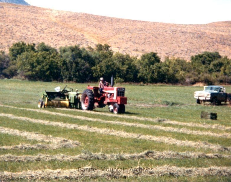 Bryant "Cactus" McCleary baling hay, circa 1980s.