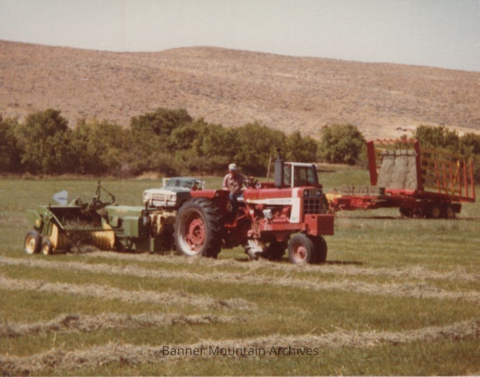 Bryant "Cactus" McCleary baling hay, circa 1980s.