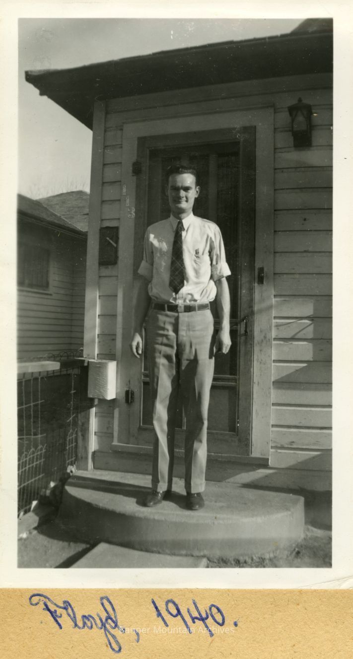 Floyd Cole standing outside a home, 1940.Photograph Details