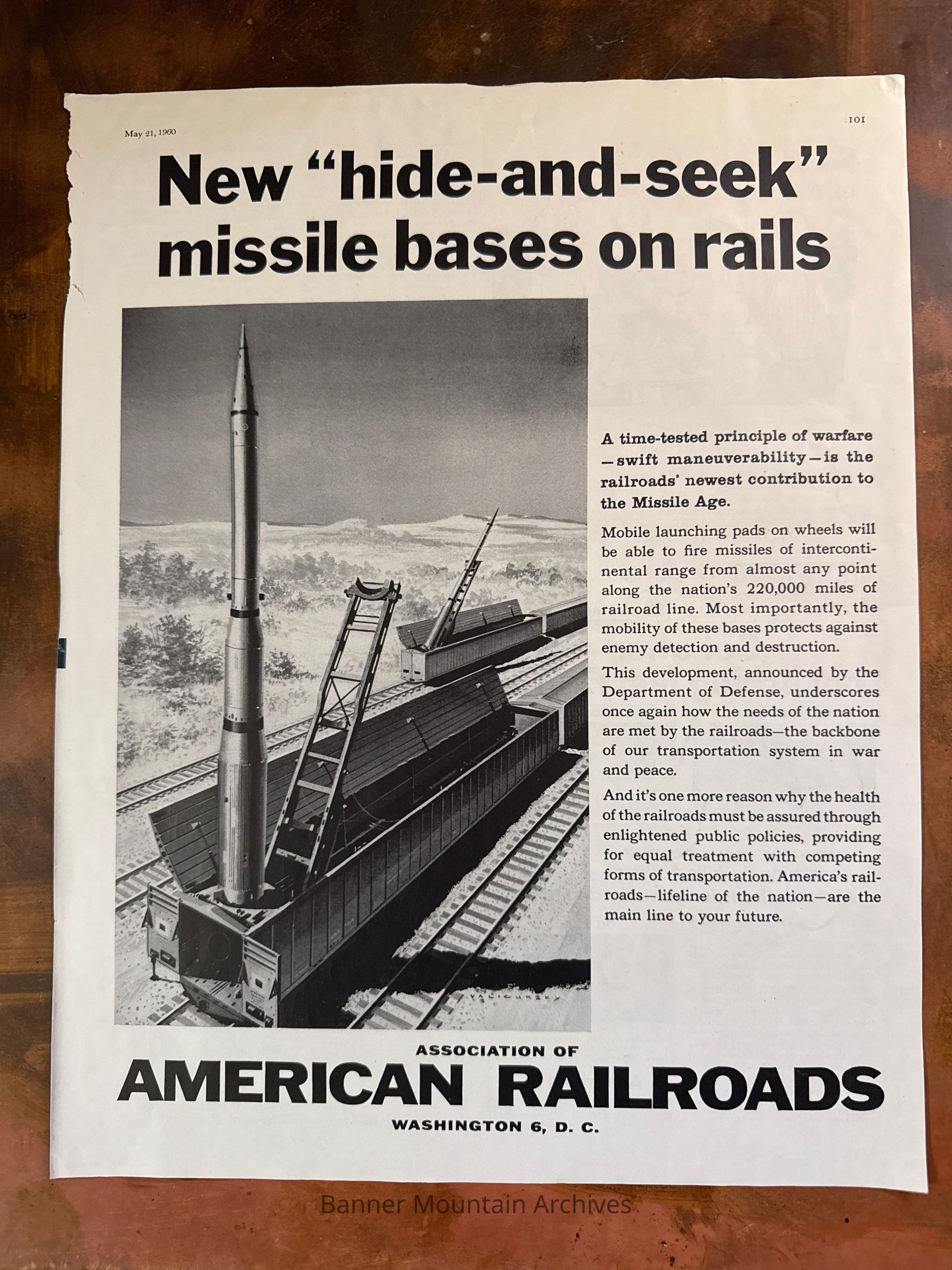 Advertisement from the AAR on mobile missile launching pads in railcars, May 21, 1960.