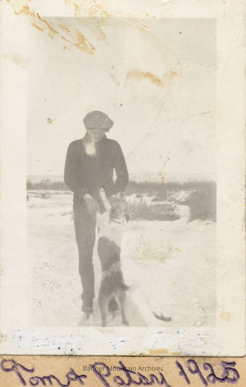 Tom Cole with dog Patsy, Casper, 1925.Photograph Details