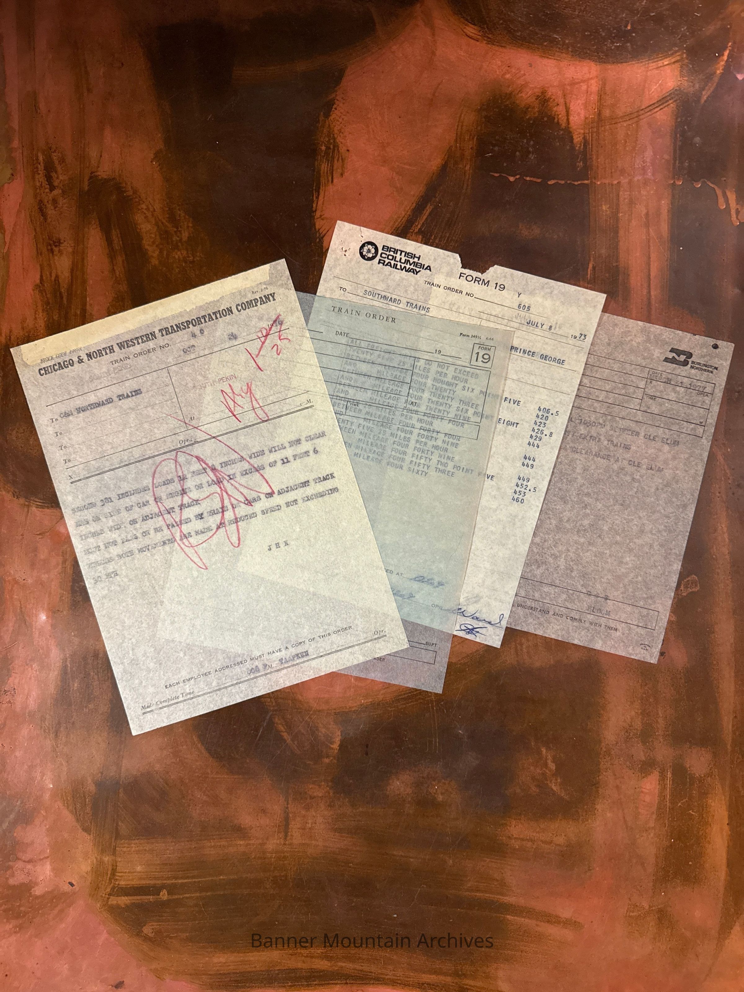 British Columbia Railway train order no. 605 to southward trains at Prince George, “All freight units do not exceed speed limit _____ between mileage ______,” July 8, 1973.Creator