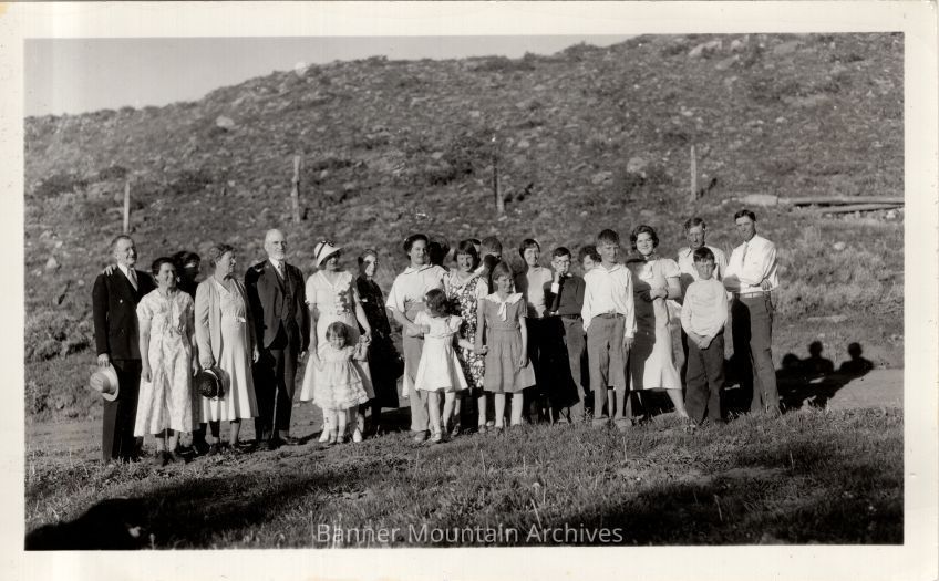 Group photo at a Brooks family reunion at the Banner Ranch.