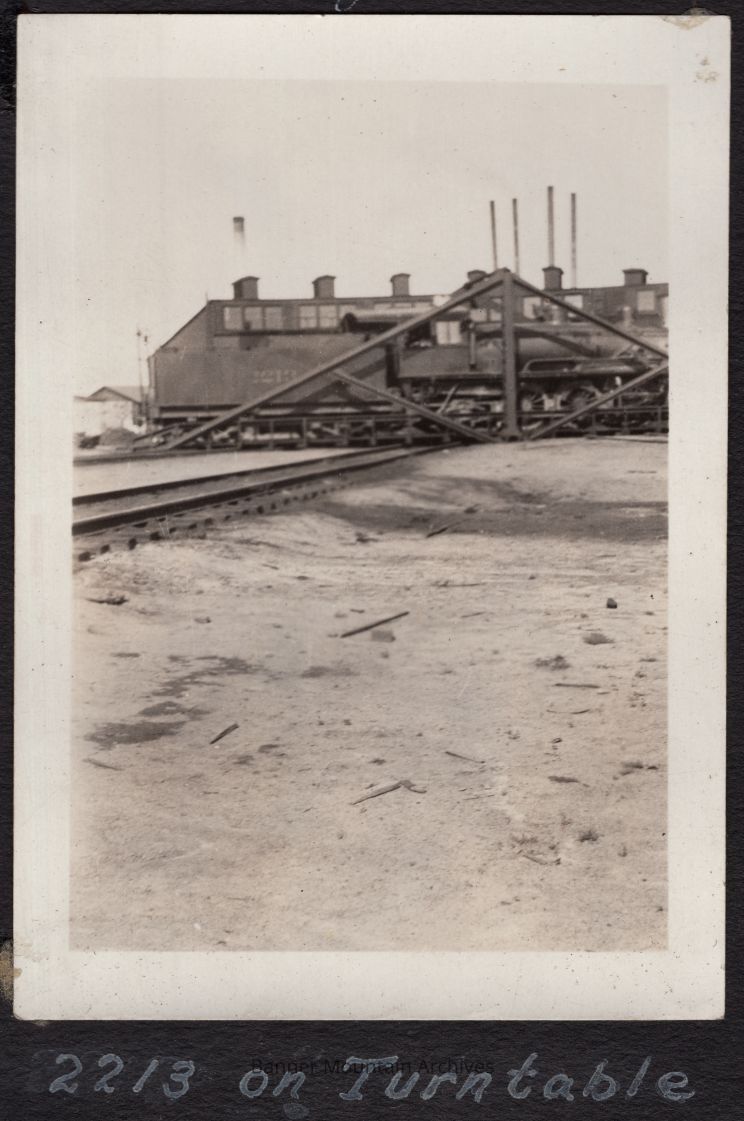 Chicago, Burlington and Quincy Railroad steam locomotive #2213 on the Casper turntable, circa 1926.