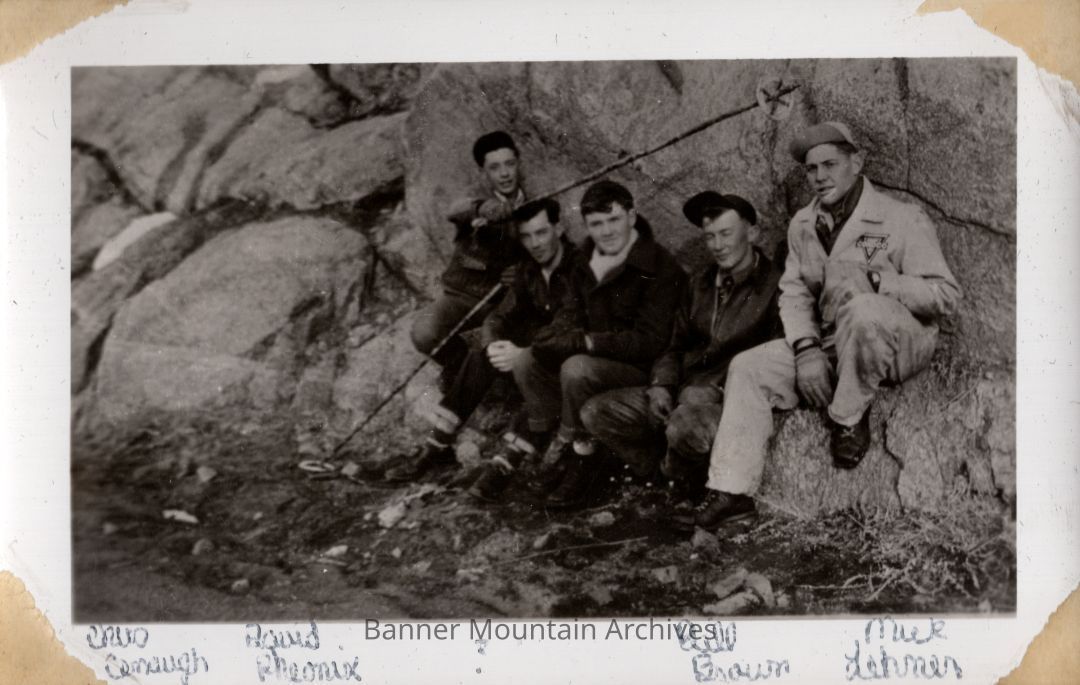 Left to right, Chris Kennaugh, David Pheonix, unknown, Bill Brown and Mick Lehner, circa 1940.Photograph Details
