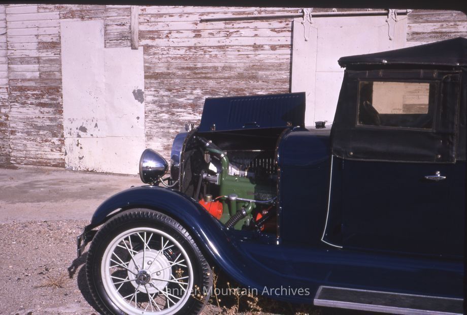 Smitty's Model "A" Ford next to the CB&Q Casper roundhouse, October 24, 1966.Photograph Details