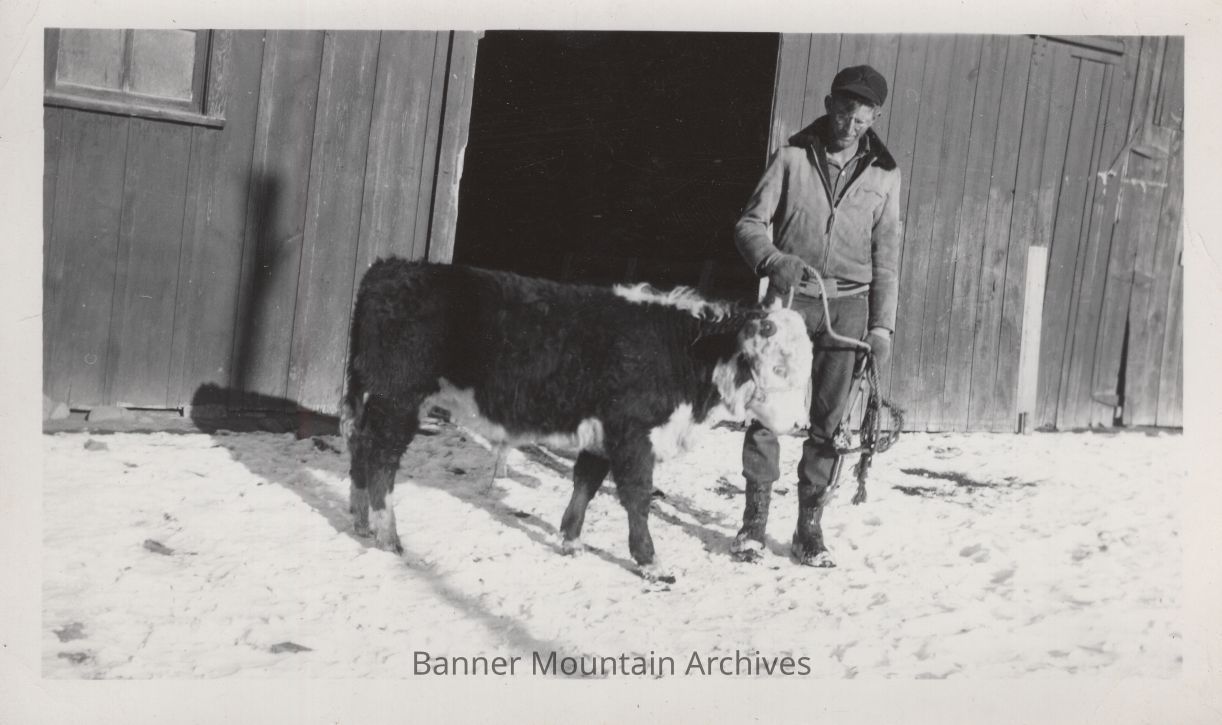 Bryant "Cactus" McCleary with a calf, circa 1950s.Photograph Details