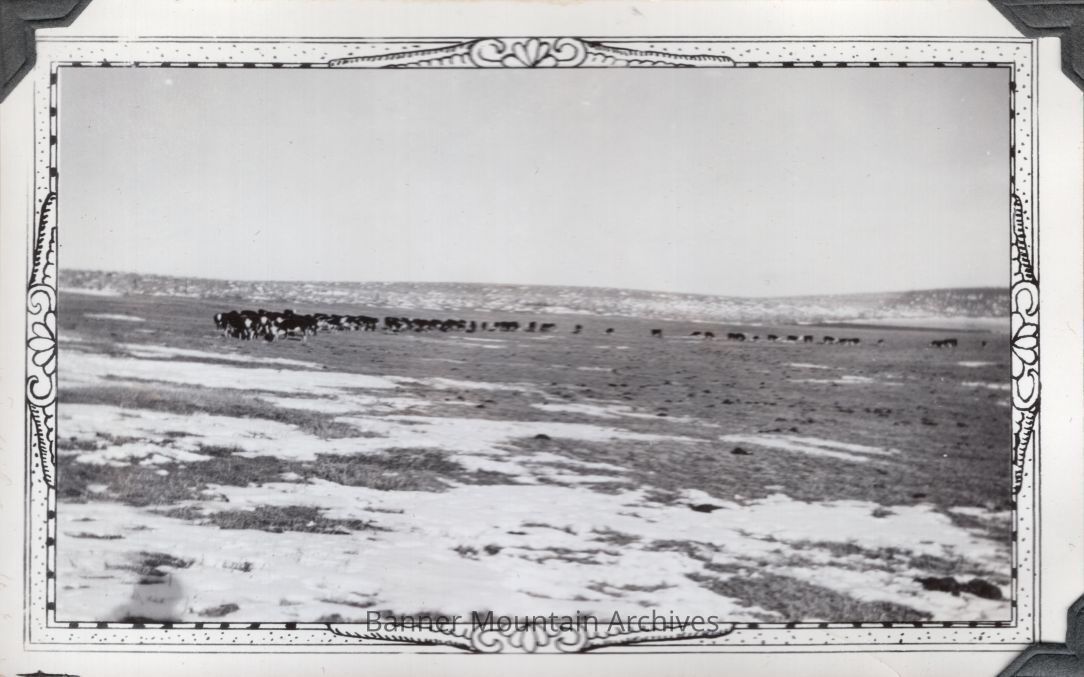 Banner Ranch Hereford cows on the feedline, circa 1930s.