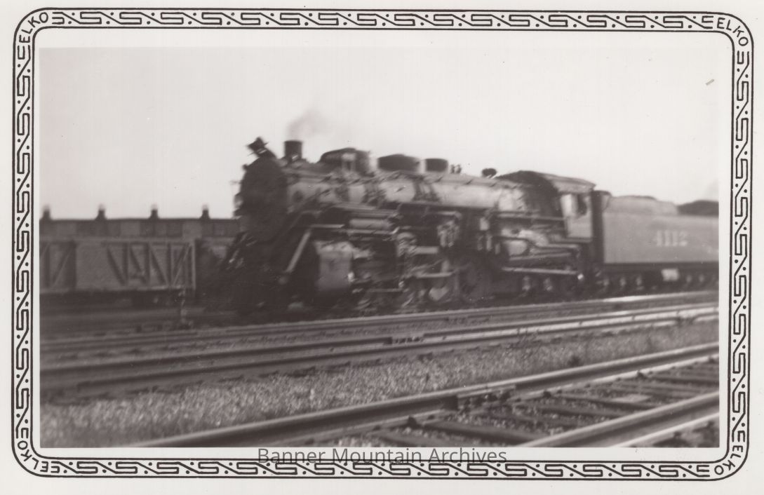 AT&SF 2-8-4 steam locomotive #4112 "west-bound," October 11, 1937.