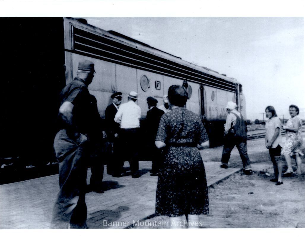 Crew change on the last passenger train to leave Casper, CB&Q's train no. 29, Greybull, WY, September 2, 1967.Photograph Details