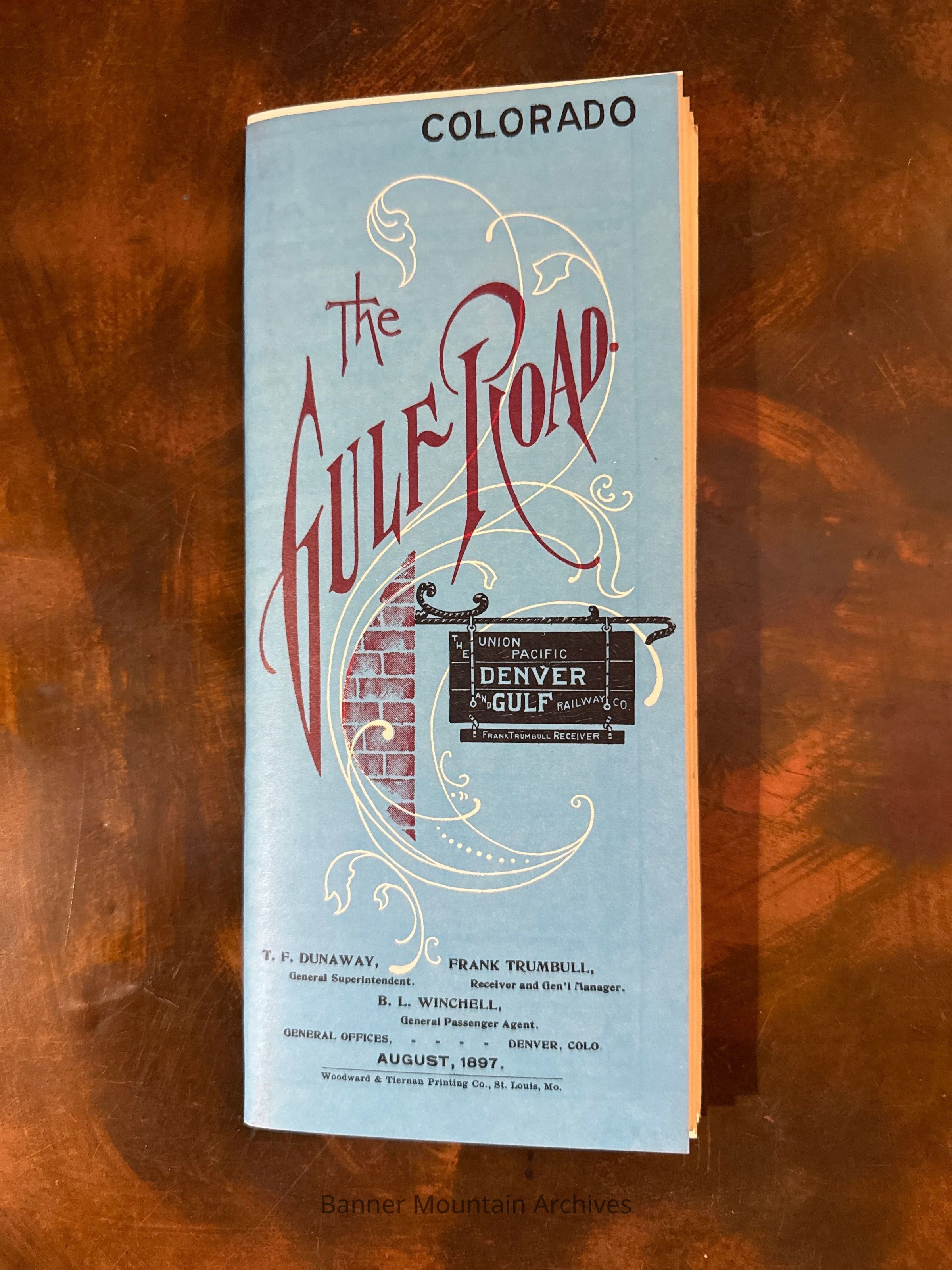 Reproduction timetable for the Union Pacific, Denver and Gulf Railway of August 1897 reprinted by the Colorado Railroad Museum, 1969.Creator