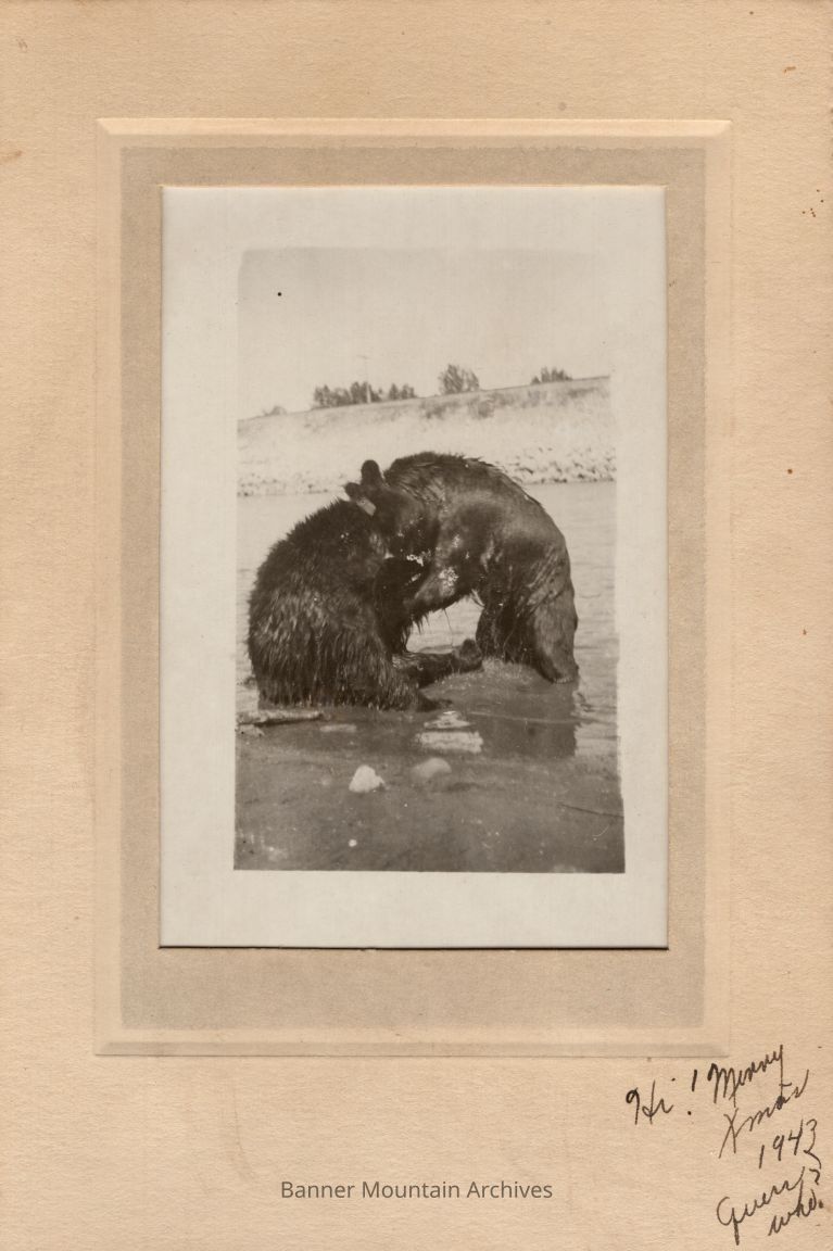 Two bears in a river "Hi! Merry Xmas 1943 Guess Who?"
