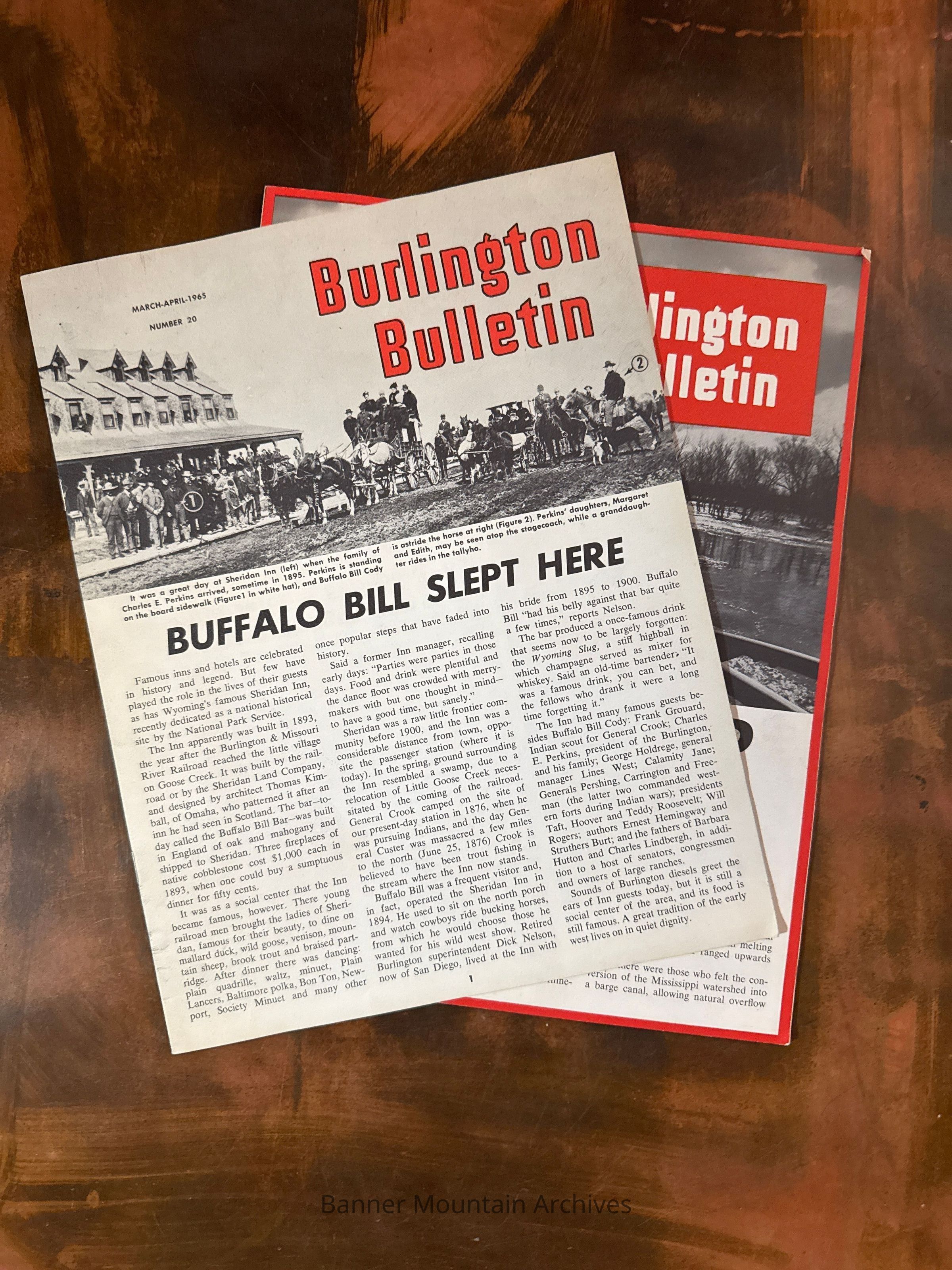CB&Q “Burlington Bulletin” number 21 for May and June 1965, featuring articles: The Great Flood of 1965, Special Report, System Quickies, Casper, What They’re Saying About Us, The Remarkable Era of Harry C. Murphy, The Saga of “Big Smith,” Merger with Northern Roads Moves Ahead, System News Photos, Passenger Success Based on Hard Work, Hope to Save Sheridan Inn and the 1965 Annual Meeting.Creator