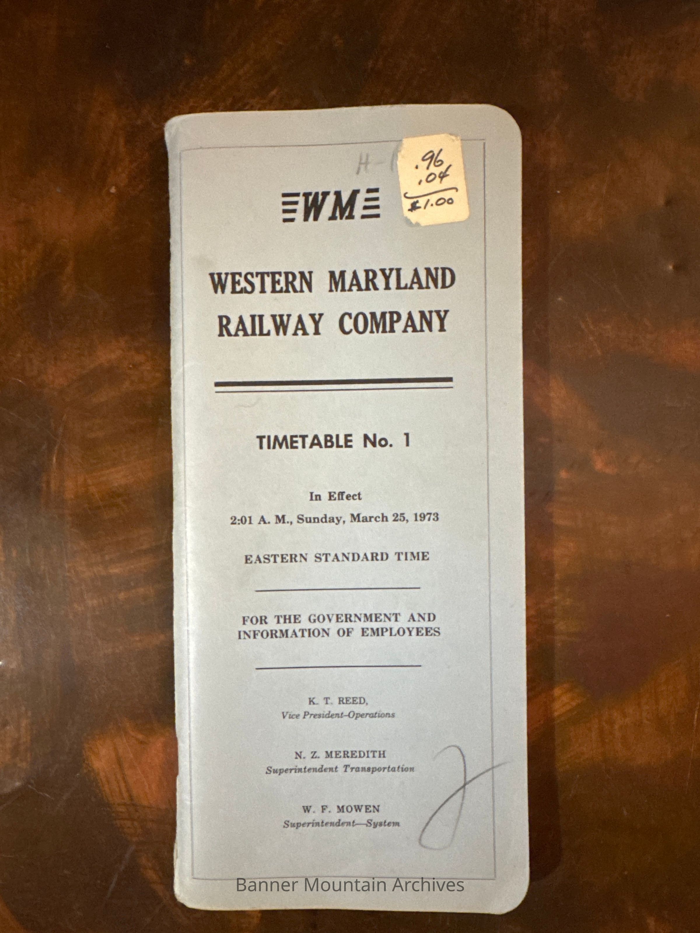 Timetable no. 1 for the Western Maryland Railway Company, March 25, 1973.