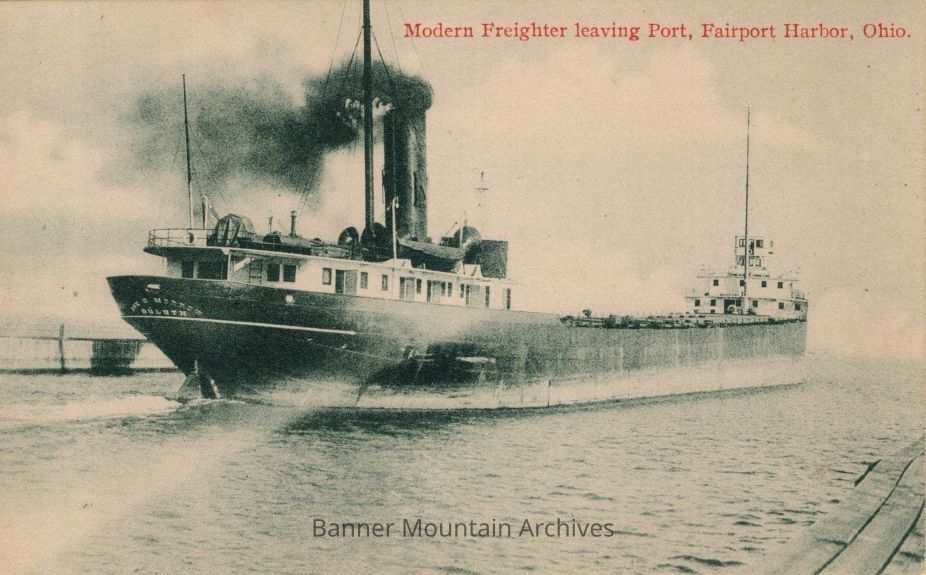 Postcard image of a "modern" freighter leaving Fairport Harbor, Ohio, circa 1915.Subject Place