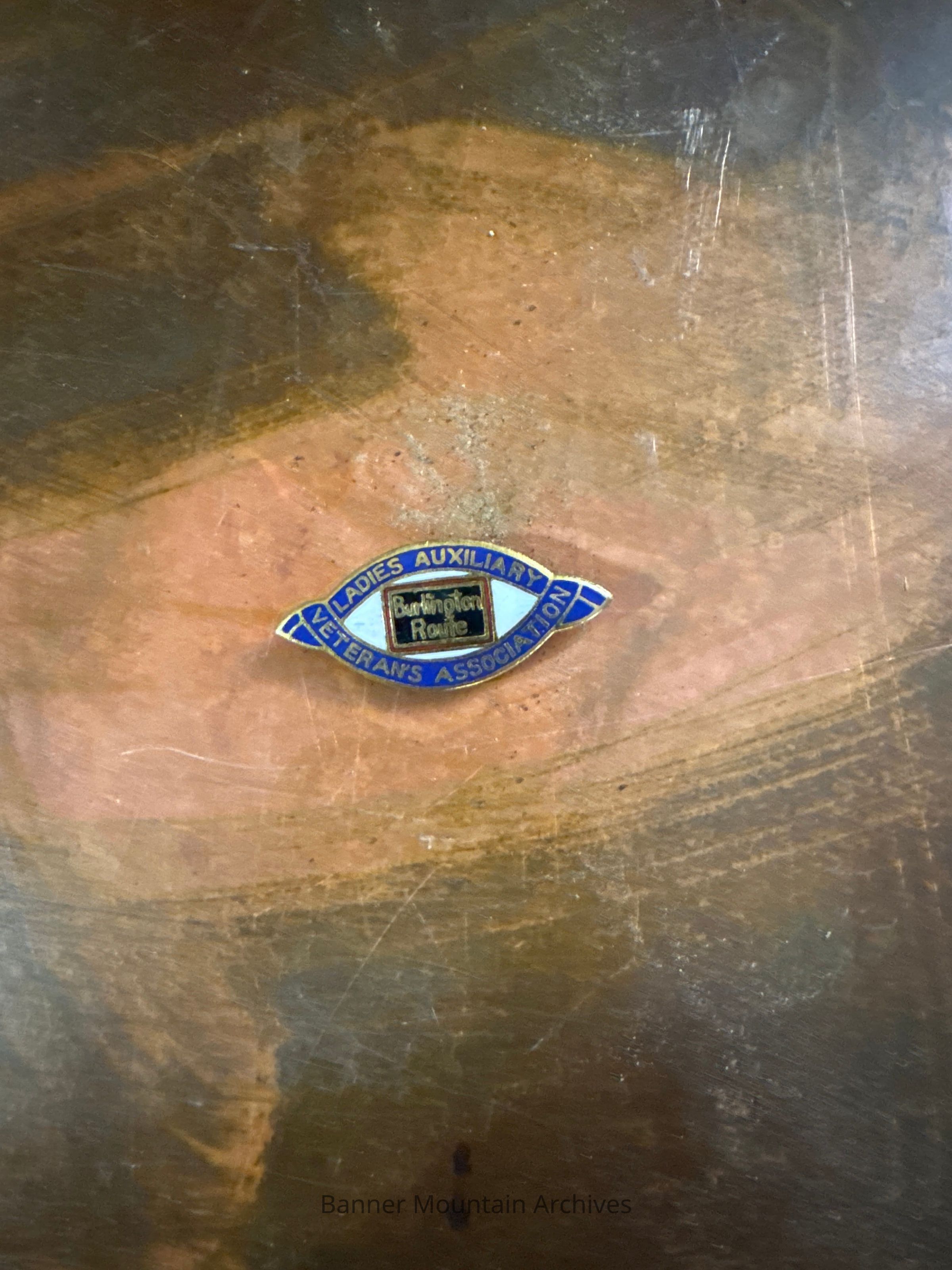 Chicago, Burlington and Quincy Railroad Ladies Auxiliary Veteran's Association lapel pin.