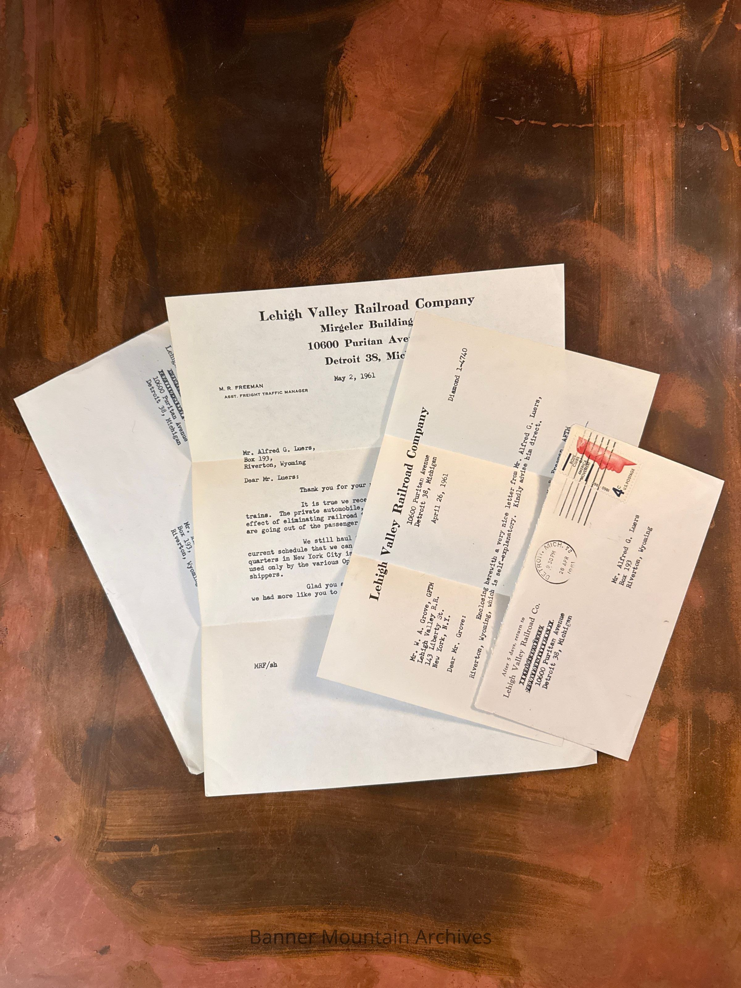 Lehigh Valley Railroad envelopes sent to Alfred Luers of Riverton, WY, 1961Date(s) of Creation