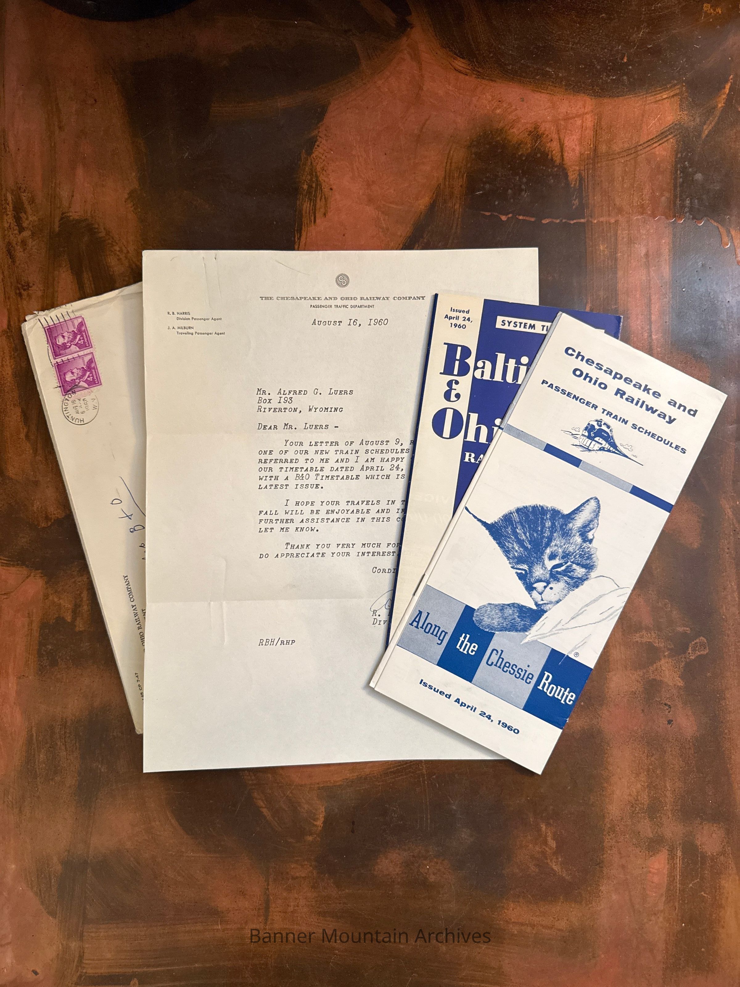 Letter from R.B Harris, Division Passenger Agent for the Chesapeake and Ohio Railway to Alfred Luers regarding a request for schedules, August 16, 1960.Creator