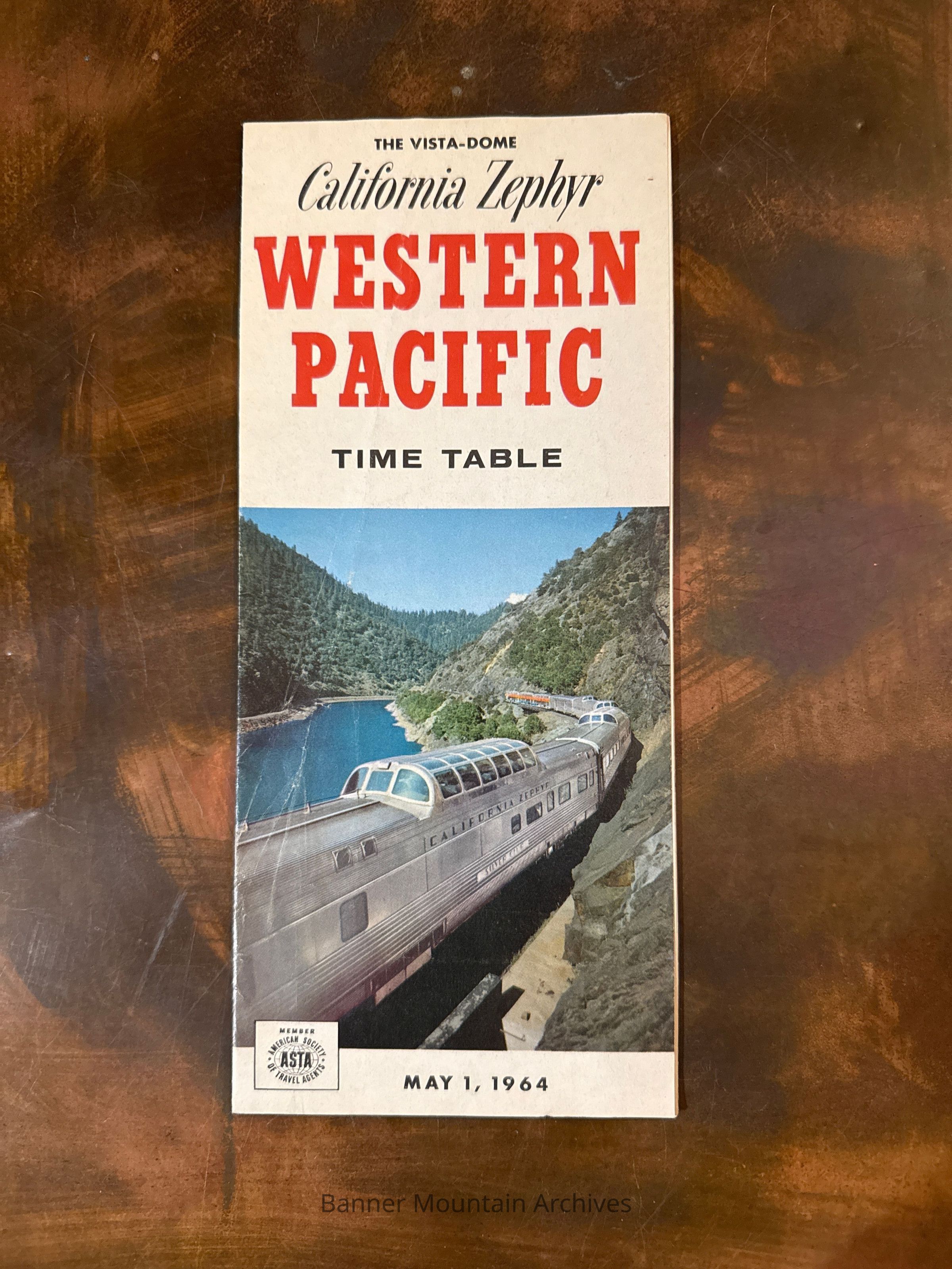 Timetable from the Western Pacific for the streamliner California Zephyr, May 1, 1964.