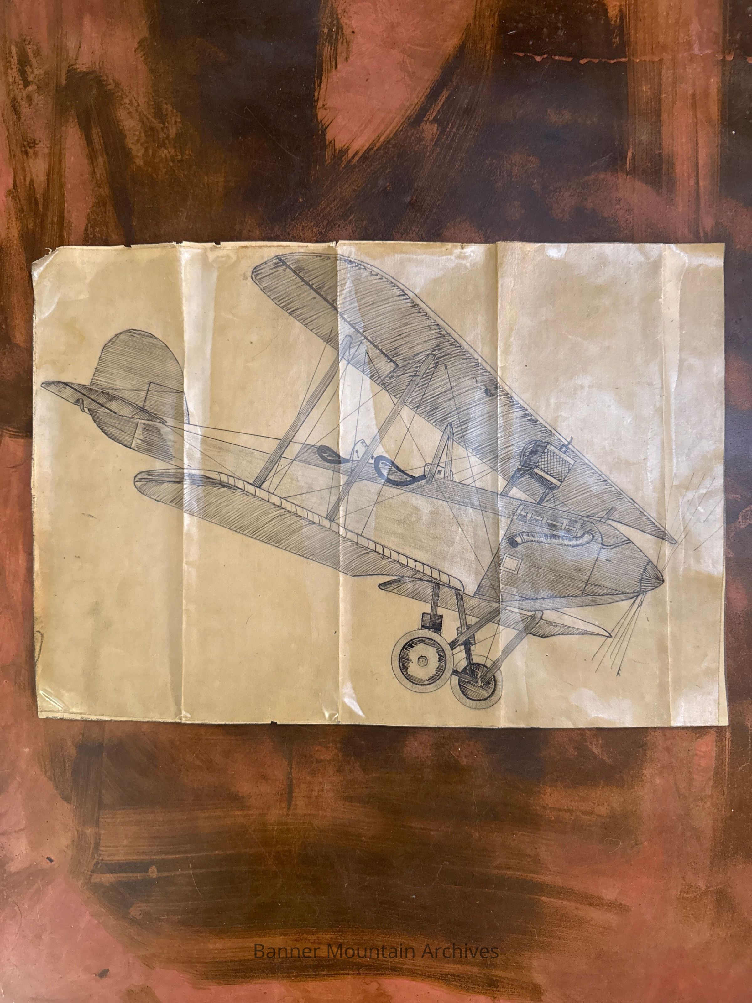 Sketch of biplane done by Tom Cole.