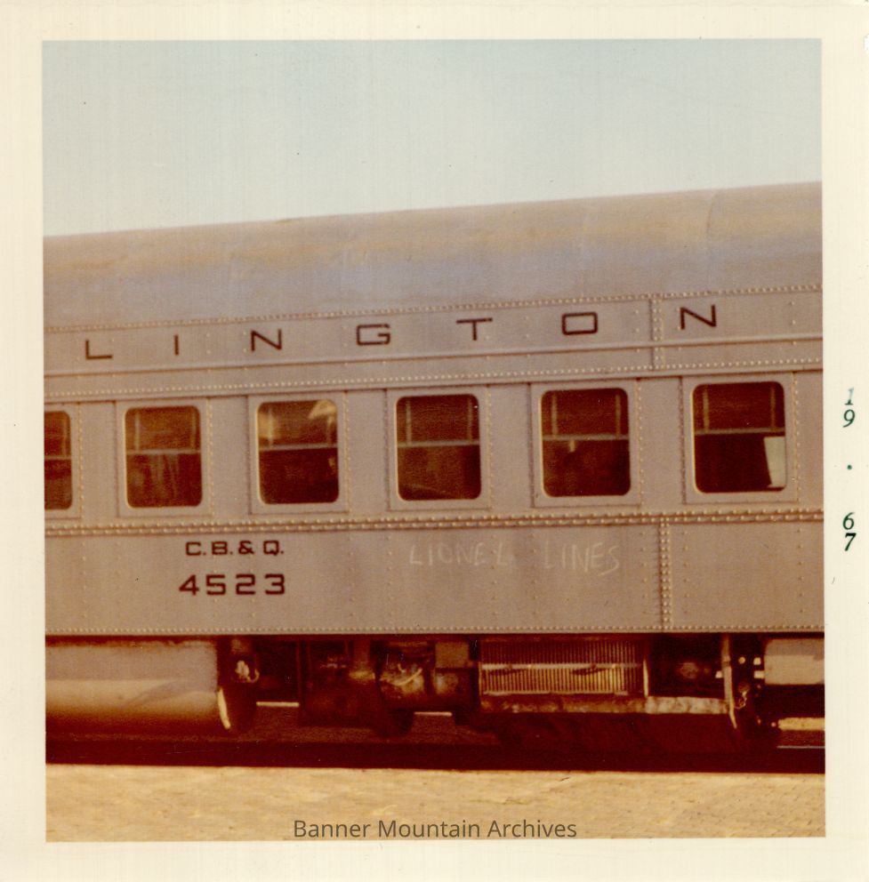 Coach #4523 on the last passenger train to leave Casper, CB&Q's train no. 29, September 2, 1967.Photograph Details