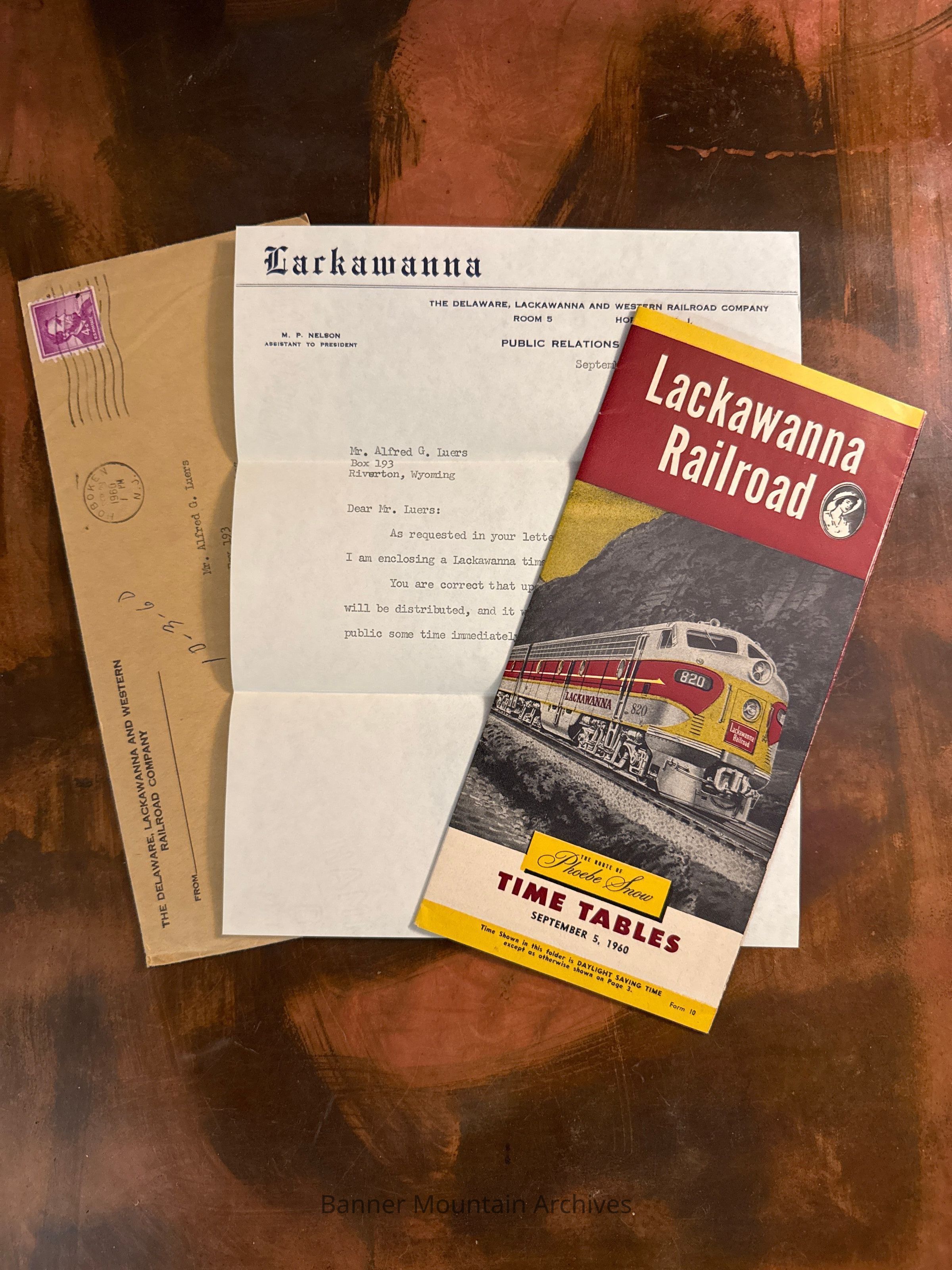 Lackawanna Railroad envelope sent to Alfred Luers, Riverton, WY, received October 3, 1960.Creator