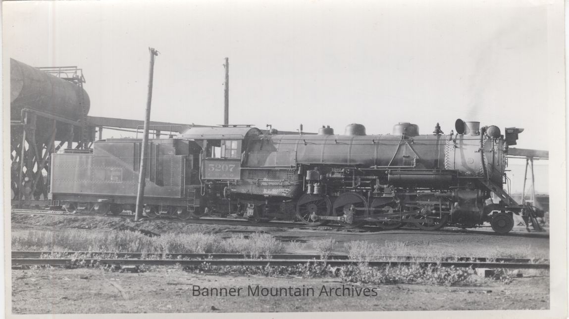 Chicago, Burlington and Quincy O3 2-8-2 steam locomotive #5207, Casper, WY, September 1937.