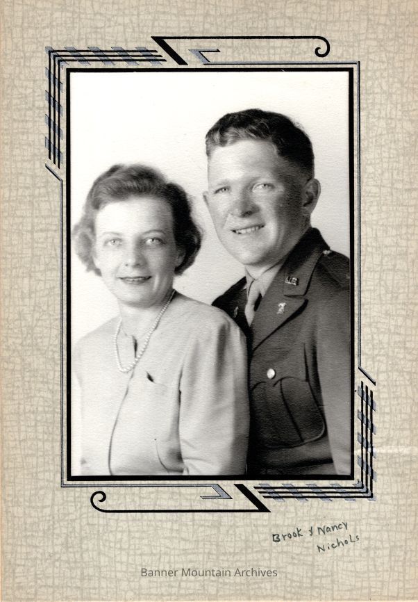 Portrait of Brooks and Nancy Nichols, Brooks in army uniform, Casper, circa 1942.Photograph Details