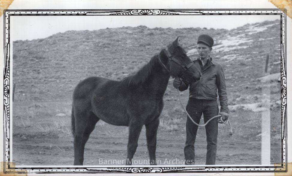 Bryant "Cactus" McCleary with a horse, circa 1930s.Photograph Details