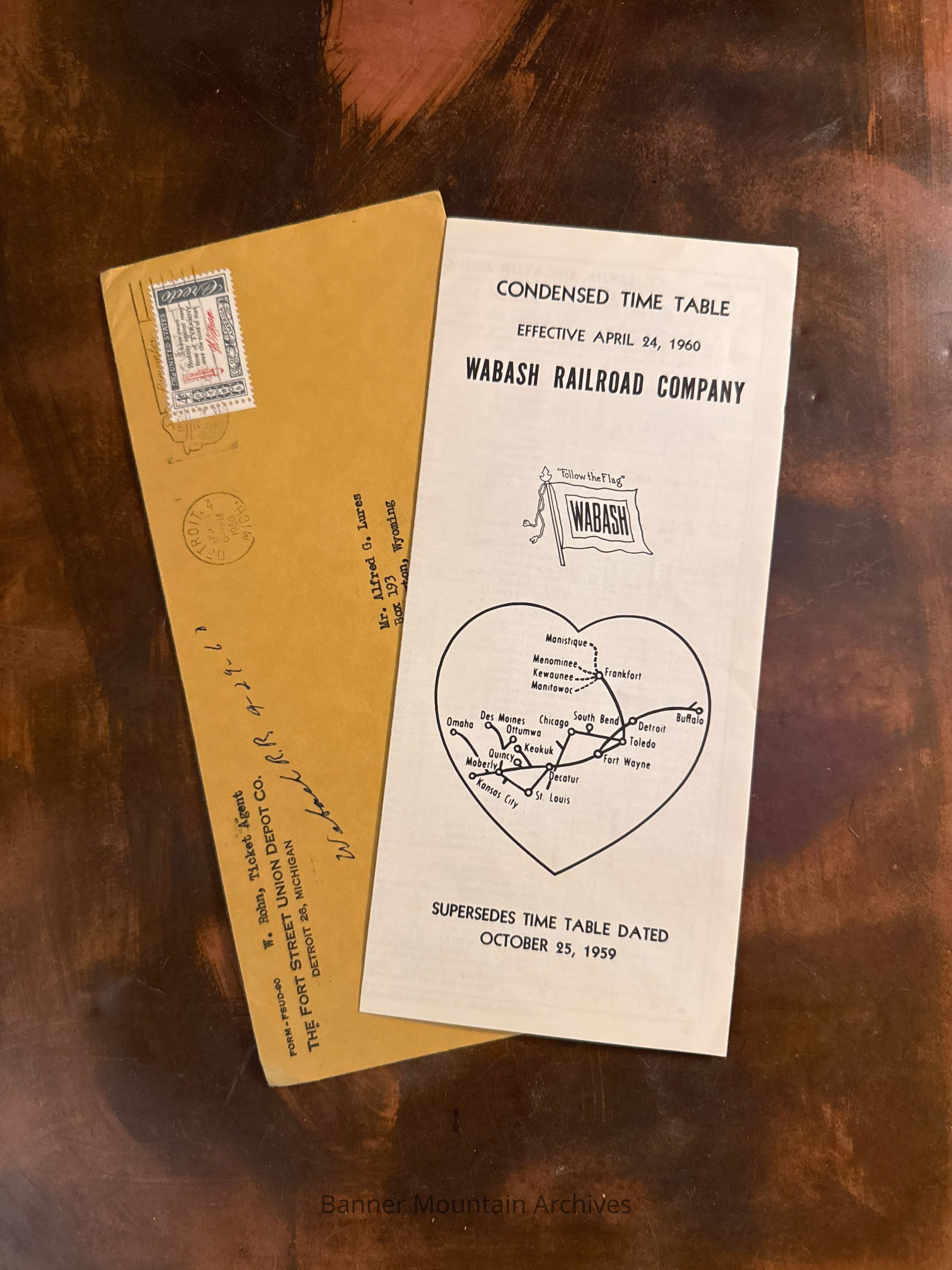 Wabash Railroad Co. envelope sent to Alfred Luers, Riverton, WY, received September 29, 1960.Creator