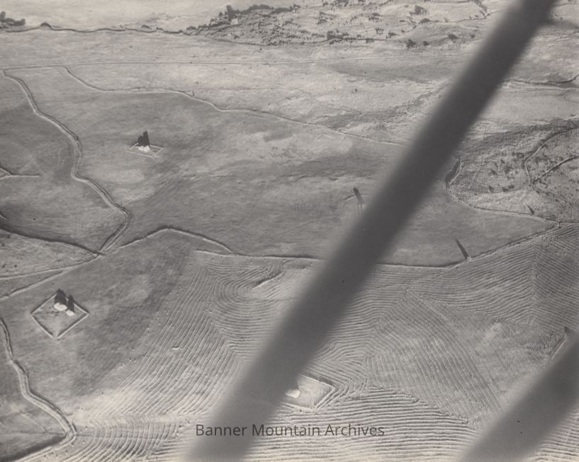 Hay meadows taken from Bryant "Cactus" McCleary's airplane, circa 1950s.Photograph Details