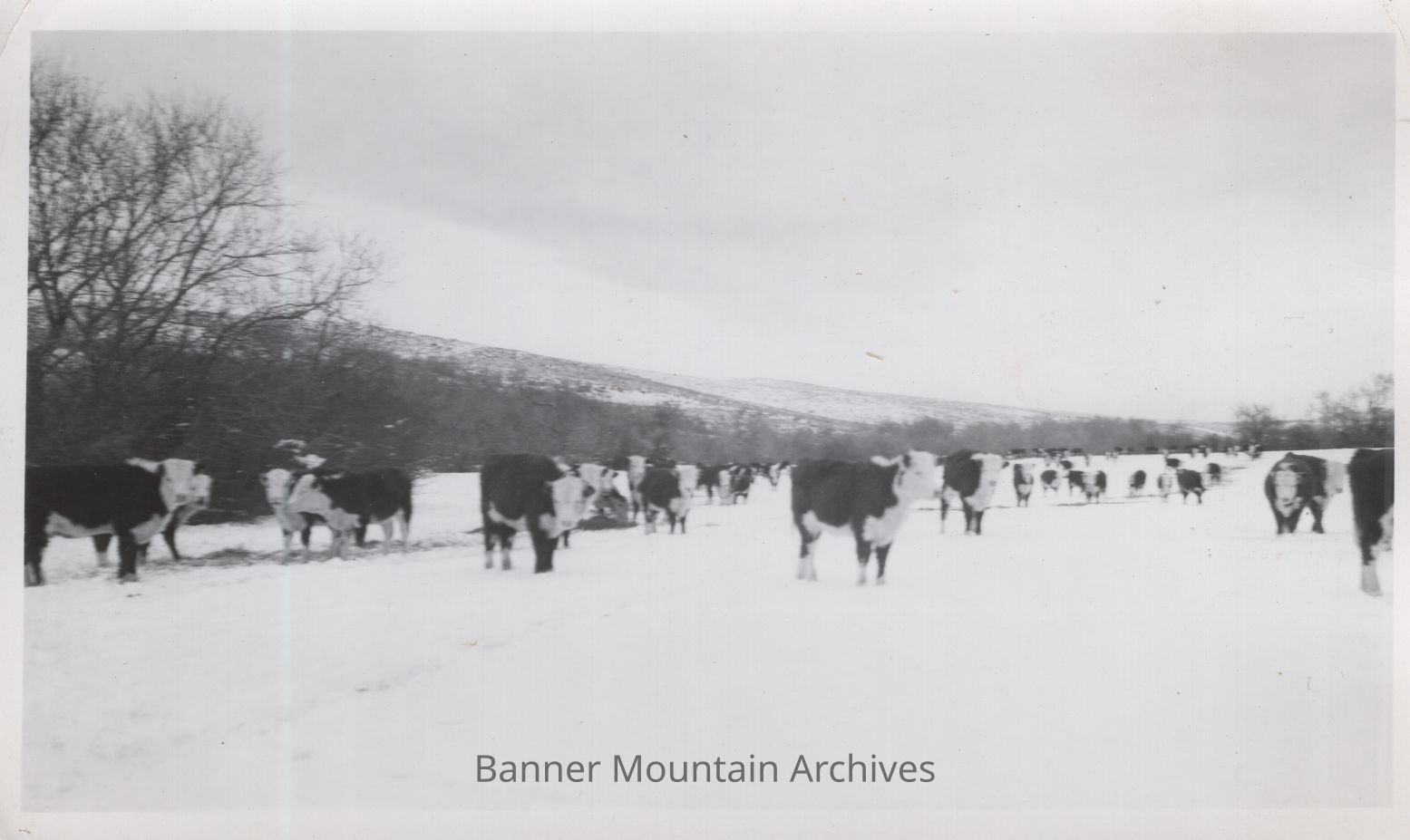 Hereford cows on the Banner Ranch, circa 1930s.