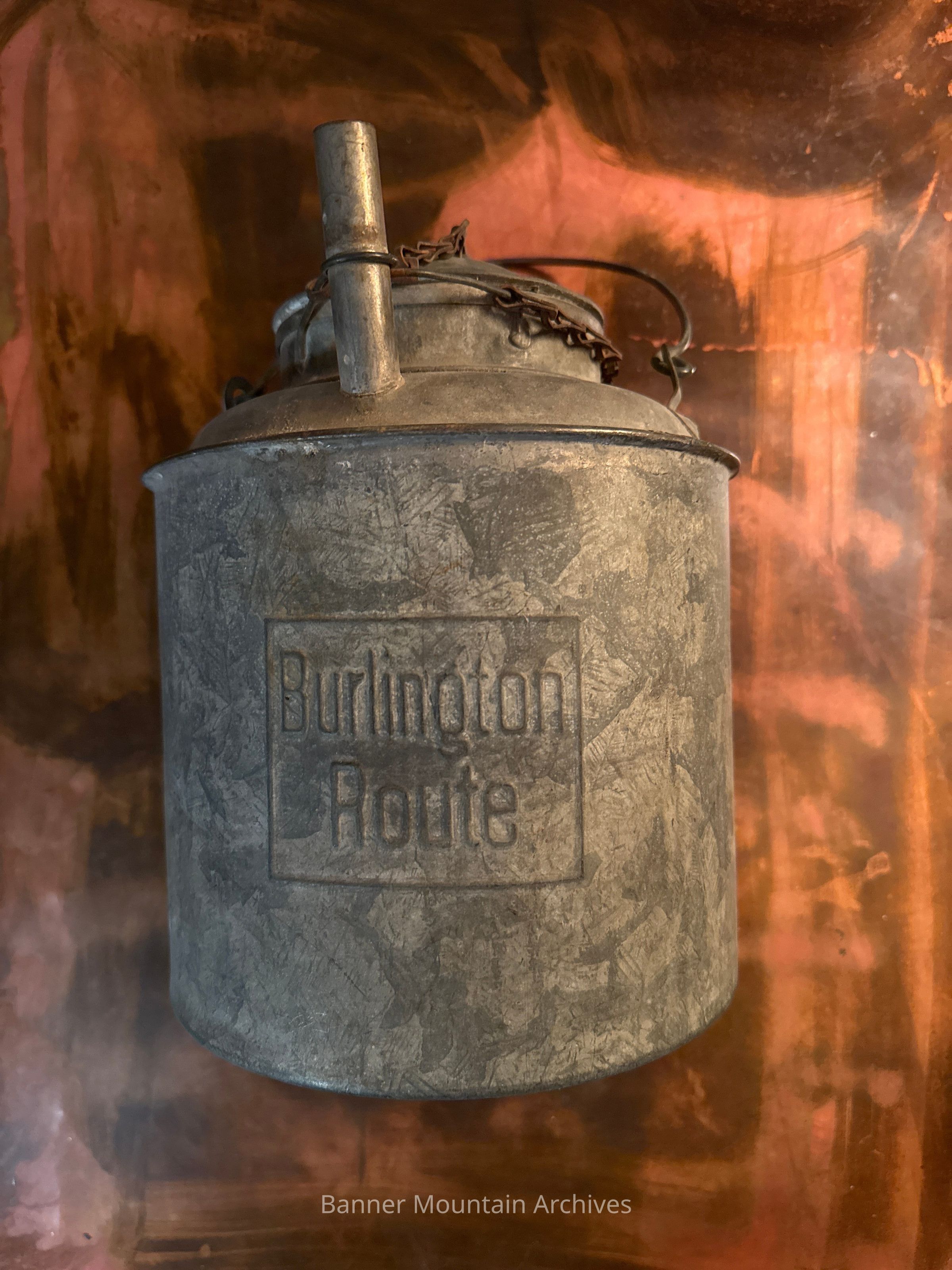 Chicago, Burlington and Qunicy oil can, stamped Burlington Route.