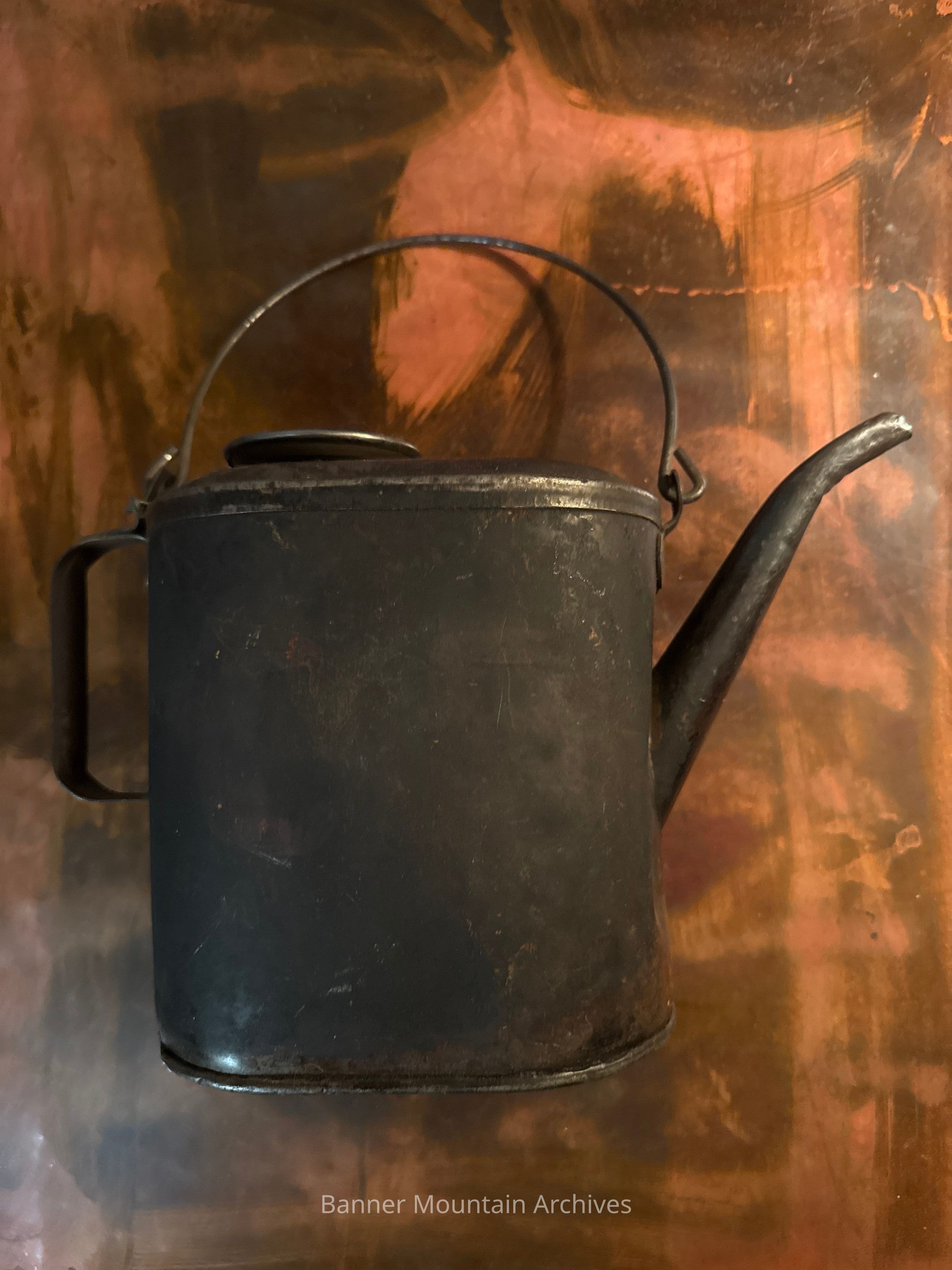 Black tea pot style oil can from the Chicago, Burlington and Quincy Railroad.